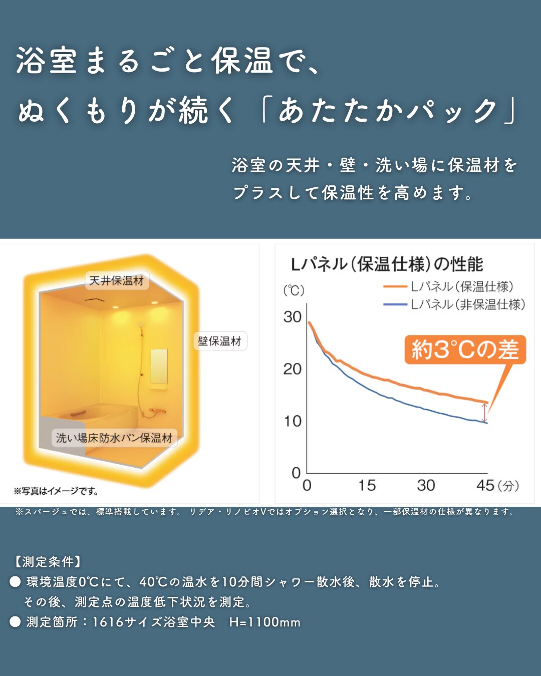 バスルームの天井・壁・床に保温材をプラスして保温性を高めます。