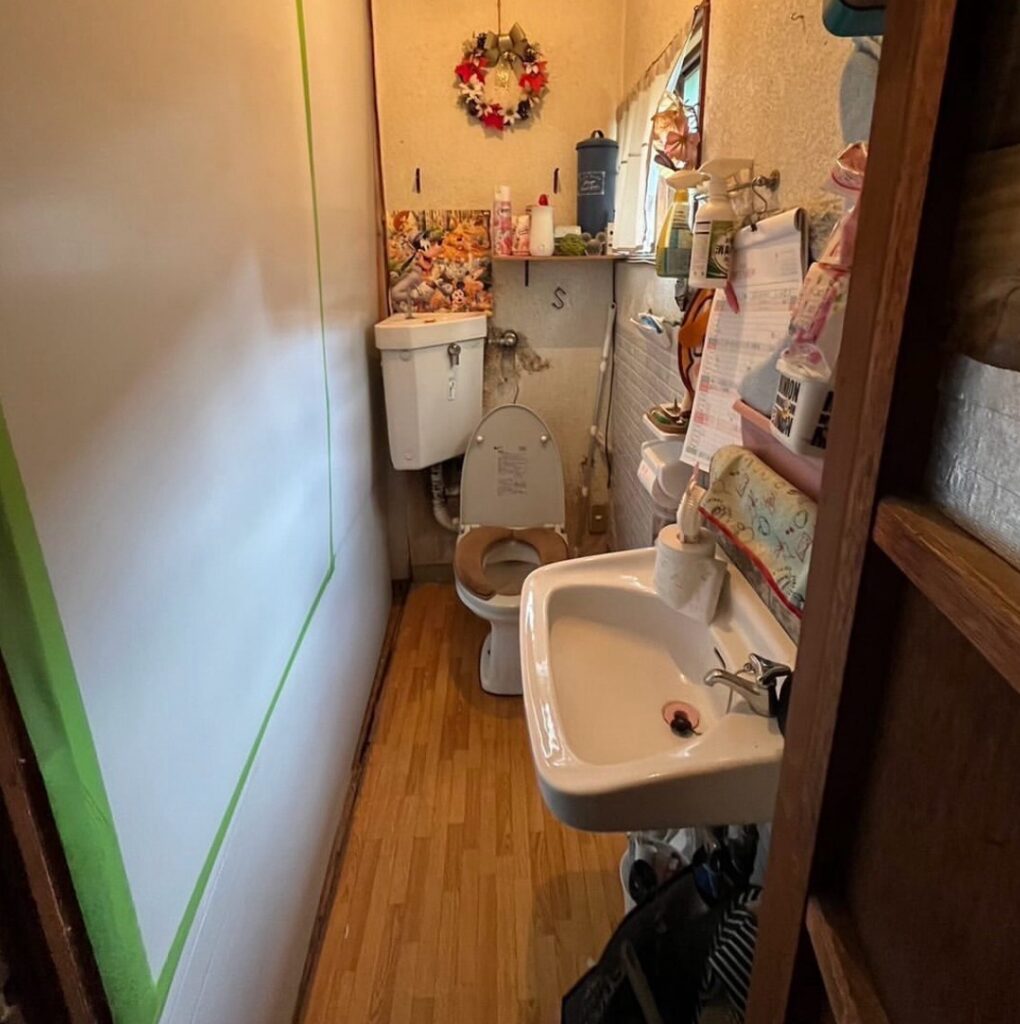 1階トイレ節水性能に優れた最新のウォシュレット一体型トイレ(LIXIL アメージュシャワートイレ)にリフォームし、シックで高級感あふれるトイレ空間へと生まれ変わりました。