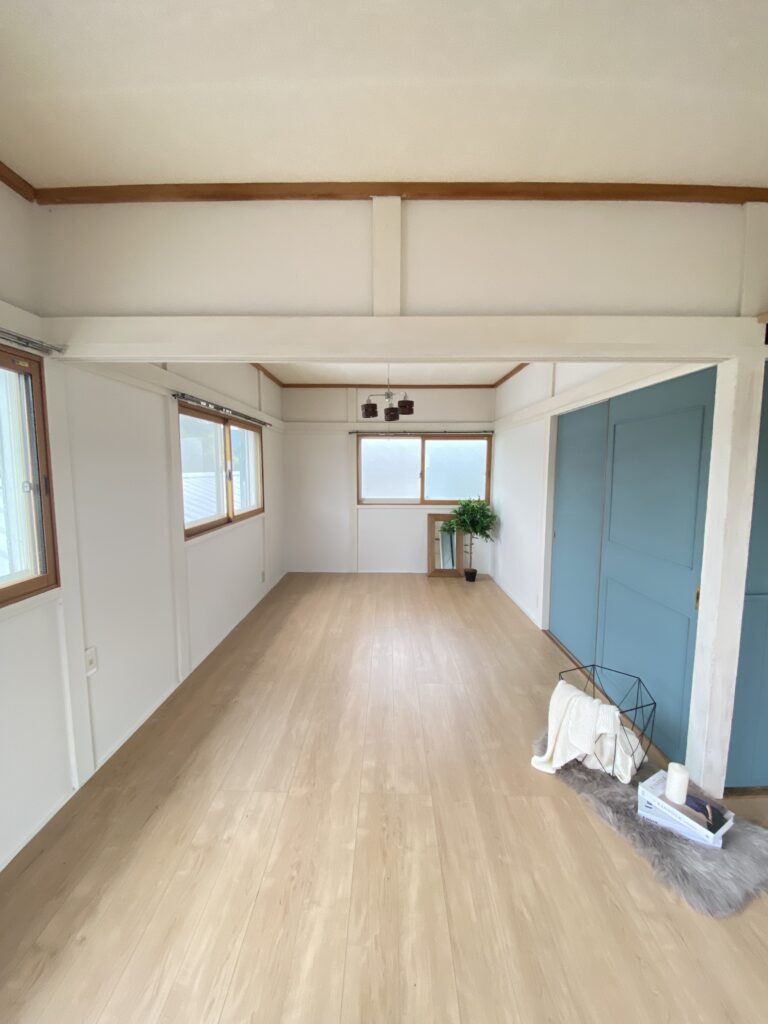 古い和室2間が、見違えるほど明るい洋室になりました。一番驚いたのは床の質感です!LIXILのフロアアースは、本当に木のような凹凸があって、年中素足で過ごしたくなるほど気持ちいいです。予算を抑えつつ、ここまで高級感が出るとは思わなかったので大満足です。
