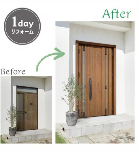 見違えるほど洗練された玄関へ。こだわりの木目デザインが、外観の格をグッと引き上げます。たった1日で、機能もデザインも理想通りに。スマートキーの利便性と新しい家の顔が、毎日の帰宅を特別な瞬間に変えます。